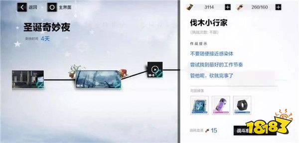 本关卡玩家们将会操纵七实来挑选合适的圣诞树并进行砍伐,过程中即使惊扰了感染体砍就完事了,难度不高。