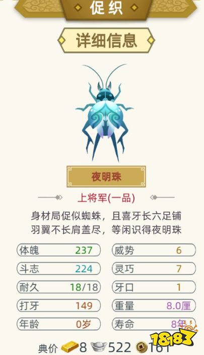 4.蛐蛐的价值会随着年纪增长和耐久度的磨损而贬值。