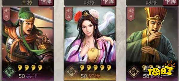 点评:这套阵容的核心打法是混乱,起哄貂蝉和逢纪都有着不俗的混乱效果加持,而带出的兵种为盾兵比较合适。貂蝉可以在敌人供的时候分担伤害,而逢纪的混乱可以让敌军自相残杀,关平的输出则可以造成缴械,而且貂蝉的战法当中也有一个缴械,二者搭配算是一个重叠的缴械技能了。