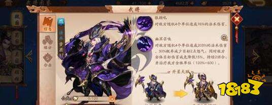 资质17(这次的金三将资质都是17下面就不复述了),0星武将技能随机对4名敌方单位造成203%法术伤害,30%概率减少两点怒气,同时敌方全体降低15%的伤害减免。并造成我方全体单位(120%+600)