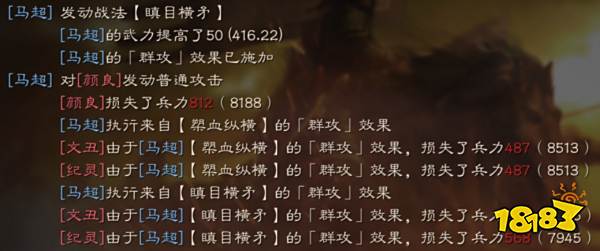 马超的自带战法【槊血纵横】可以使马超获得武力加成和群攻效果,相当于一个稳定的瞋木横矛。在配备瞋目横矛后不仅武力属性的加成可以叠加,群攻效果也可以叠加。这是一种双群攻的玩法,能够有效的打出大量的群攻伤害。
