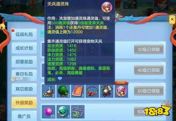 除了昕计划,七日签到,神武英豪令这样的内容之外,还有等级礼包、通灵珠等,保证我们基本的战斗能力。