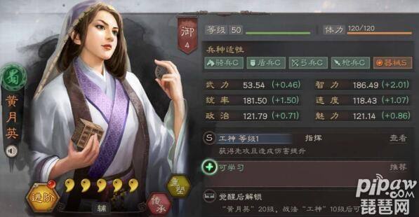 黄月英这个武将可能很多玩家都会拿来当做开荒过度武将,然后看看属性和兵种后可能感觉不值得培养!其实在小编看来黄月英最强的地方还是在于她的战法!