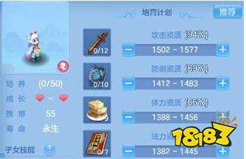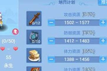 孩子要么是物理,要么是法(而道具培养则是决定孩子成年后各项资质的波动范围及成长,因此根据孩子的定位选择,道具培养通常有3种比较常用的分配方式:物理、中速法、龟速法。