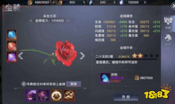 稀有坐骑在玩家兑换后可以被玩家骑乘,那么是不是初始的坐骑就没有用了呢,其实不然玩家如果继续升阶初始坐骑的话,战力值也还是会继续增加的,其中玩家点骑乘按钮就又可以更换骑乘初始坐骑的外表了,战力也不会衰减,因此重叠的只是外表,玩家依然可以选择两个坐骑都升阶。