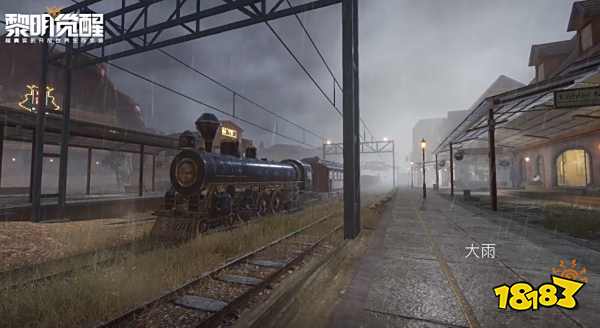 大雨天气让玩家体验到走在雨中,也给画面增添了荒废感,杂草重生的火车站,大雨倾盆而下。