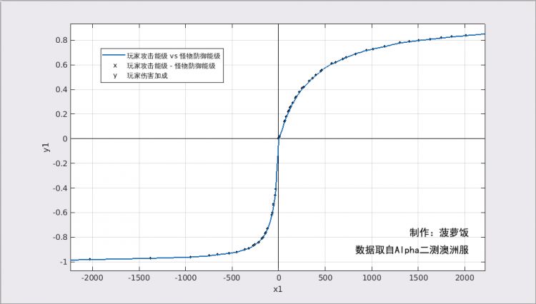 x轴:玩家的攻击等级 减去 怪物的防御等级,如果为正数,则为第一象限的曲线;若为负数,则为第三象限的曲线。