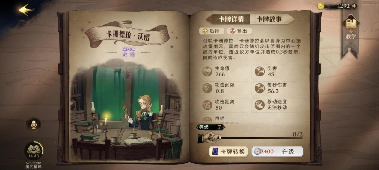最后说一下专属型:①哈利:哈利这招持续击退的魔法的作用基本是专属于PVE的,在我们面对十几只甚至数十只怪物时,唯有哈利的“呼神护卫”才能救我们一命,当然这招还能把BOSS压在墙角打。②赫敏:赫敏的作用是在我们每释放一张即时魔法时,就会再随机抽取我们的一张即时手卡并释放(有10秒冷却),专属于高费魔法卡组,用以连环轰炸。