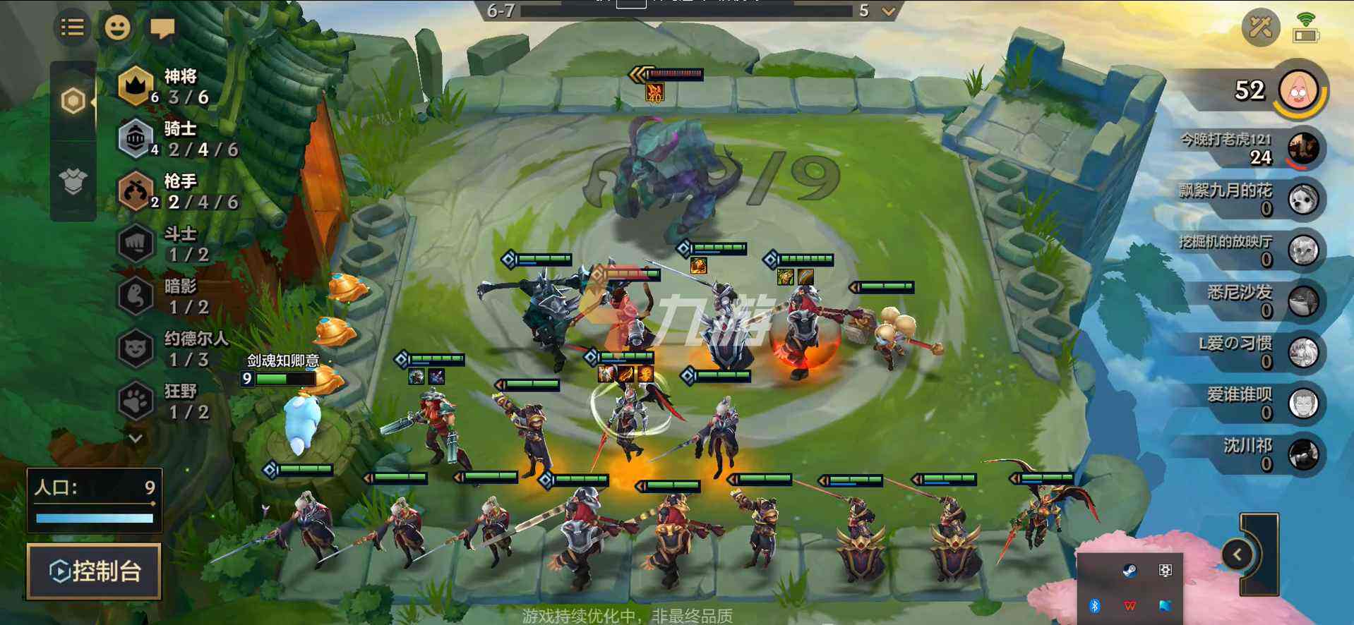 目前游戏比较不错的前排有骑士以及斗士,其中前期一般选择斗士进行过渡,后面转4骑士减少全部队友受到的伤害,来提升我们射手的生存力。