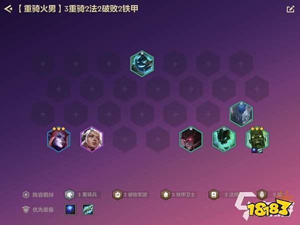 重骑兵女枪:这套阵容的整体组成为赫卡里姆,厄运小姐,瑟庄妮,锤石,德莱文诺,提勒斯,贾克斯以及芮尔,组成了四个破败军团。以及三个重骑兵的羁绊,三个铁甲卫士也可以为所有友军增加护甲,随着上个版本,丧尸和龙族的大削弱,物理阵容可以说是稳稳上分儿,每局都有好几把枪手以及18183阵容,那么重骑兵女枪就是针对他们的一个存在,比较怕亚索和圣光阵容。