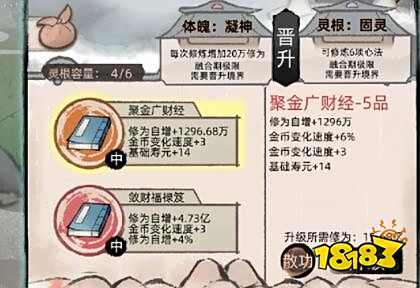 4、金灵体:金行体质,来钱加速,金币自增+20%;