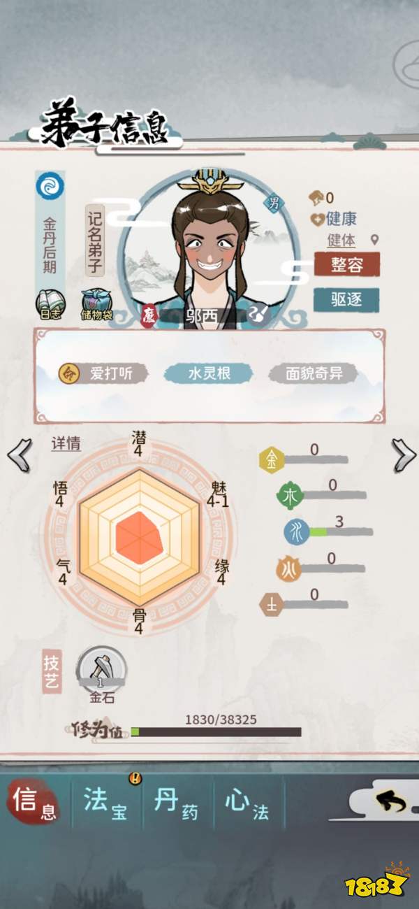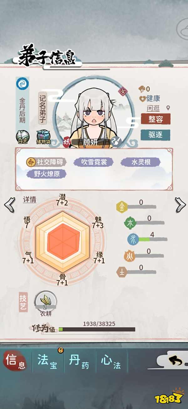 收获完后我们再用复灵丹进行救治后开始转移修为(温馨提示不建议转移到小师妹及掌门,因为传功每个弟子进行一个可以先转移到潜力超过9的弟子。)