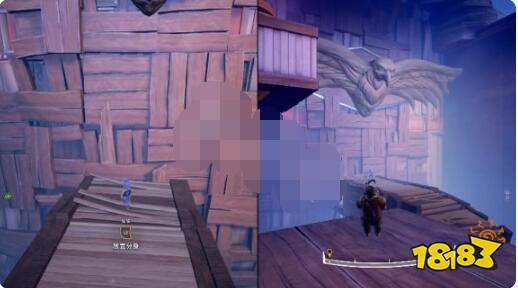 需要科迪操控时间后小梅在木桥上释放分身,随后小梅到安全的位置科迪调整时间使鹰雕塑落下小梅瞬移回分身站在鹰雕塑上,最后科迪控制时间将小梅送往高处。