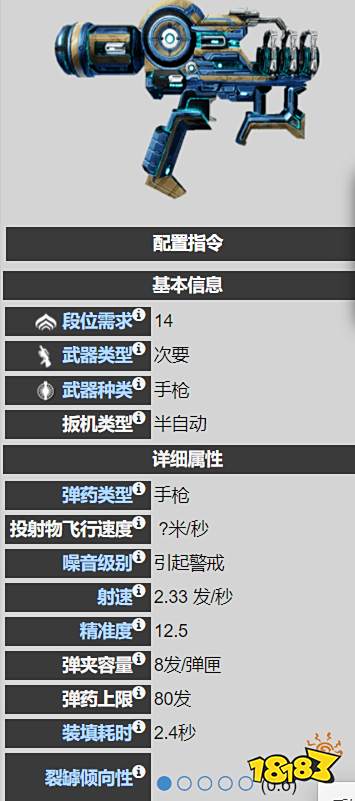 乍一看面板也还不错,特别是40高触发的情况下还有着优秀的双暴,但仔细一看,8发弹匣,装填还要2.4s。不过倒是给了个被动——爆头击杀能加速装填,能提供50%装填速度加成,但问题来了,又要爆头。