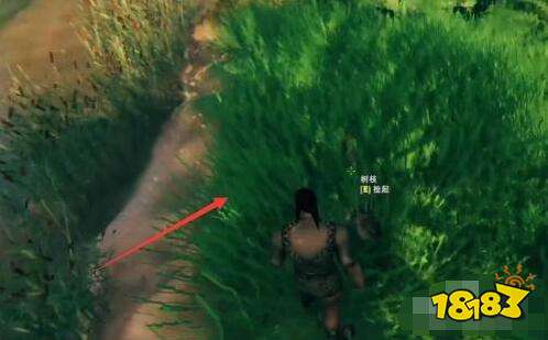 3、看到地上的白色燧石以后,按E键即可拾取。
