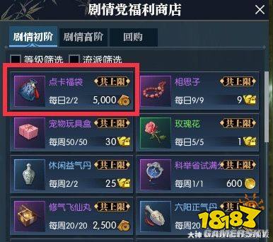 每天可以用交子购买两个点卡福袋,红尘点大于90,每个福袋3750交子,红尘点50-90,每个福袋5000交子,每个福袋包含0-2个小时点卡