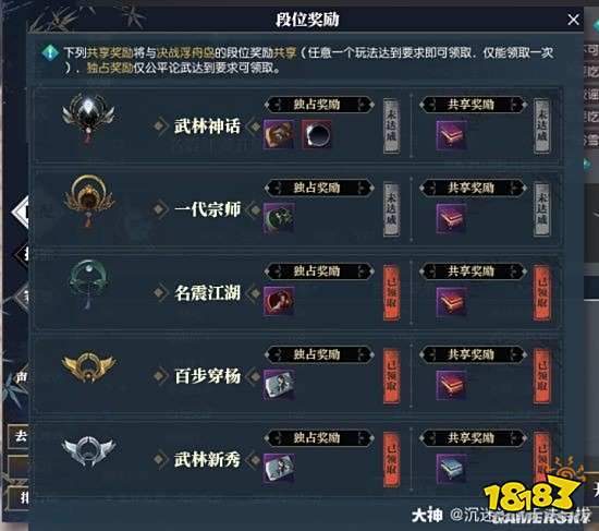 每赛季(两个月)通过公平论武,达到武林新秀段位可得5小时点卡,达到百步穿杨段位可得8小时点卡,达到名震江湖段位可得12小时点卡,达到一代宗师段位可得20小时点卡,达到武林神话段位可得30小时点卡