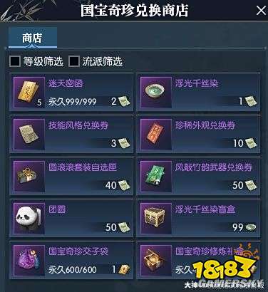 熊猫:风敲竹韵武器外观兑换卷(武器外观)、团圆(跟宠)、瑞宝(坐骑)