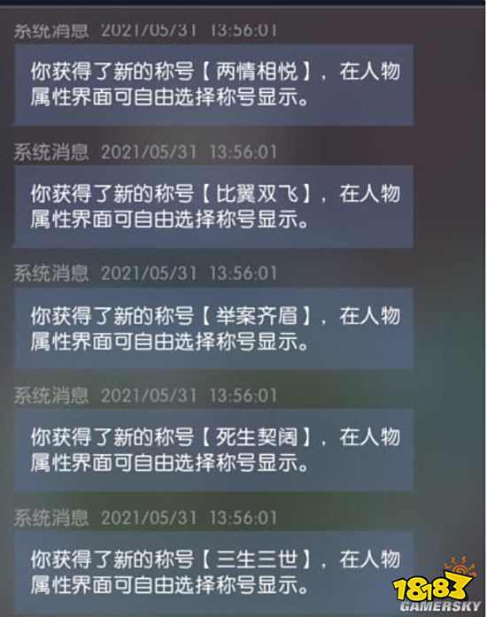 1、情缘纪念称号,只有结为侠侣才计算时长,离婚则回收称号