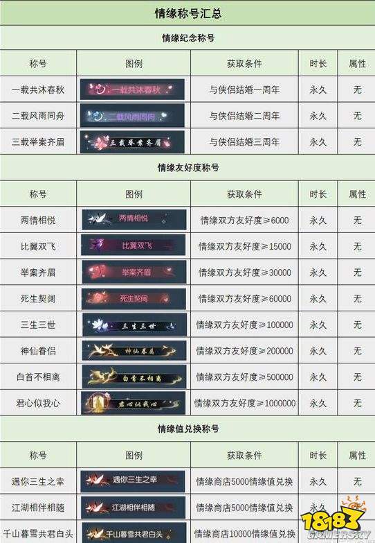 2、情缘友好度称号,结为情缘自动把友好度转为情缘友好度,也就是结情缘之前的友好度也计算其中