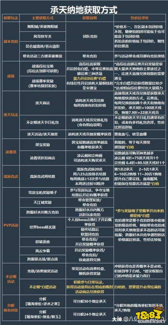 2.大型多人PVP玩法的参与奖励也有概率开出承天纳地,但要注意保持活跃/拾取奖励的资格。