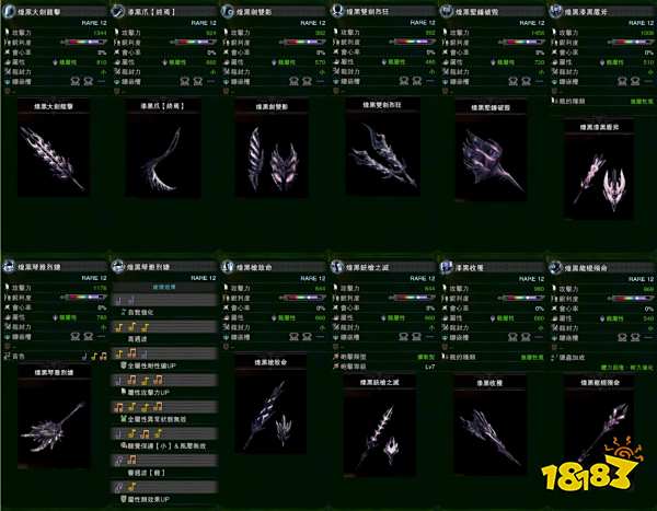 近战均为长紫斩、所有武器都带两个二级孔、轻弩是最强的。