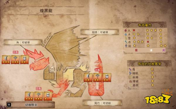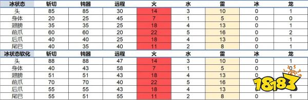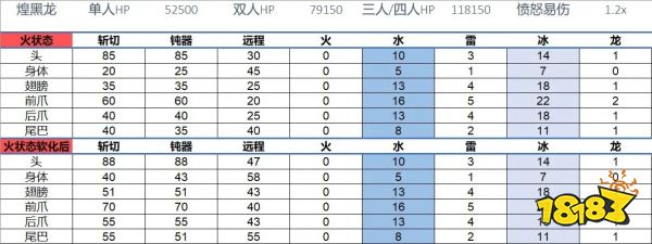 根据这张图可以看出来,煌黑在炎活性状态下弱冰,在冰活性状态下弱火,而龙活性状态全属性吸收都比较烂。