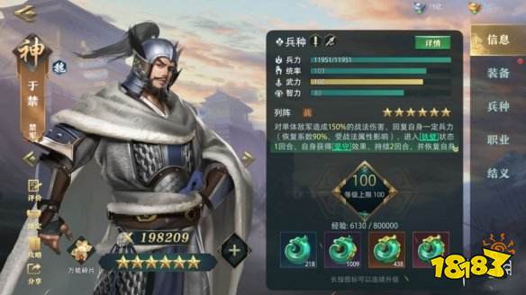 总体来说,于禁自身的防御以及恢复能力,会随着星级的提升,不断加强,属于前后期都可以使用的武将。