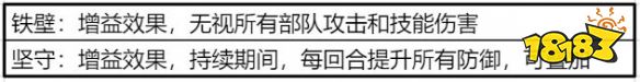 6星技能效果:对单体敌军造成150%的战法伤害,回复自身一定兵力(恢复系数90%,受战法属性影响),同时进入【铁壁】状态1回合,自身获得【坚守】效果,持续2回合,并恢复自身25士气。