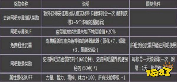 网吧专属buff:疲劳值燃烧&通关地下城经验+20%