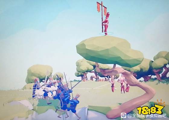 如图,我不讲武德的将守旗放在树上,这样可以让那些近战地面单位束手无策,只能乖乖站在树下干瞪眼,任凭我们后方的远程输出摆布,当然也可以卡在一些其他地形让他们地形杀,至于如何才能安全的将诱饵卡住,并且又能够同时卡住敌人,自己慢慢摸索一下吧。