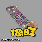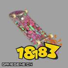 滑板介绍:以紫色为基调的花俏滑板。加速、回转、极速都经过调整。