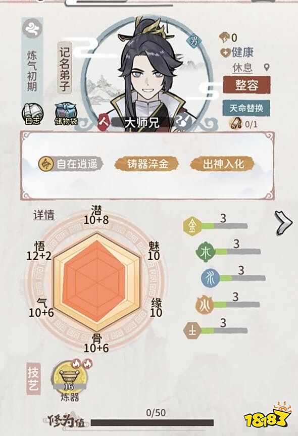 大师兄是我的门派近期上线的热门弟子,在大师兄的天赋选择中,首个推荐大家选择的就是出神入化,这对前期高效推图的帮助很大。