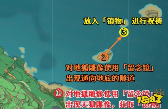 原神神里屋敷之外的滩涂地下位置需要大家来到神里屋敷右上角的岛屿,使用留恋镜扫描小狐狸雕像。这时候地下入口打开,进入即可。