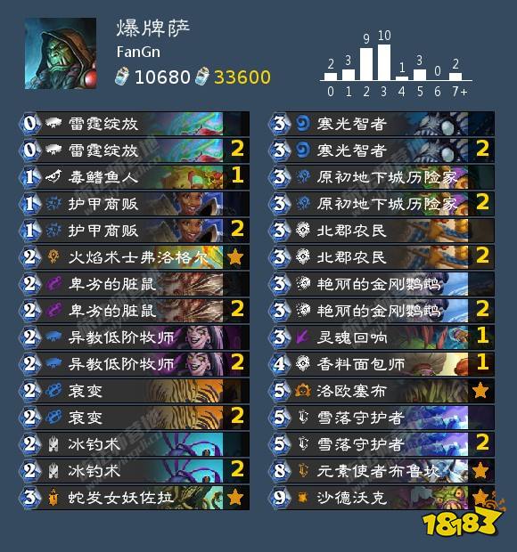 这也是战吼萨的一种形态(雷霆绽放形态),还有重要的农民鹦鹉无限牌库思路。这套战吼萨放弃了传统的复制+回手的无限体系,换成了更加竞速且不用担心破产的洗卡组无限套路。