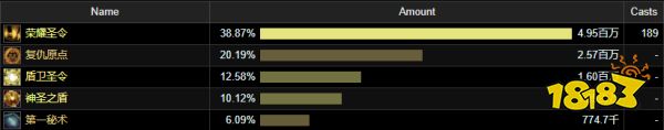 第一秘术法典装等262,治疗总量为371.1K,占比为5.04%,去除对队友使用圣令的情况下,实际自疗占比约为为6.27%。