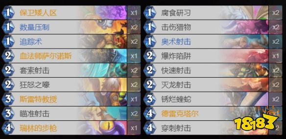 1费:*保卫矮人区;腐食研习x2;数量压制x2;击伤猎物x2;追踪术x2;奥术ARget="_blank">射击x2