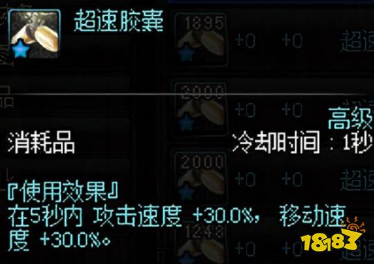提升移动速度的药水也是必不可少的,超速胶囊当年据说坑一波人,目前售价依旧白菜,玩家想要提升移动速度,可以考虑入手。此外碎片材料兑换的三速药水玩家也可以考虑,毕竟这些碎片对于玩家来说也没有什么用处。
