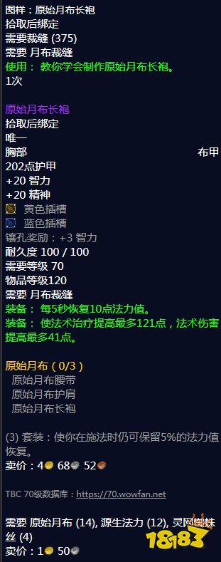 魔兽世界怀旧服原始月布长袍配方图纸掉落出处