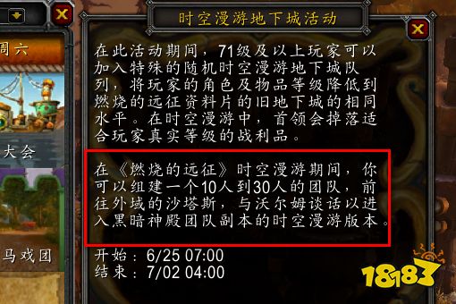 3、要选择《燃烧的远征》开始的时光漫游期间。