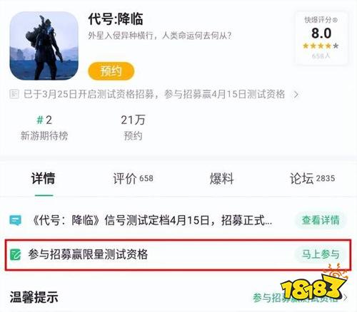 代号降临是腾讯最近上线的末日生存冒险的游戏,测试时间是在4月15日,结束时间到29日,玩家可以先去预约获得测试资格后在这段时间内进行测试体验,感兴趣的玩家快速和小编来看一下吧。