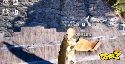 3、屋顶角落调查地面,获得奶油芝士面包。