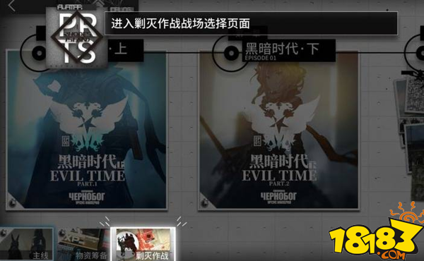 2、在剿灭作战界面,我们下一步是选择一个作战的战场,其实相当于选择一个地图,剿灭作战的玩法规则其实是一样的,但是地图会有差异。