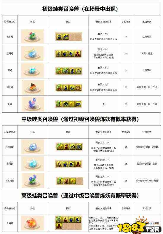 梦幻西游蛙类召唤兽培养攻略 蛙类召唤兽合成公式