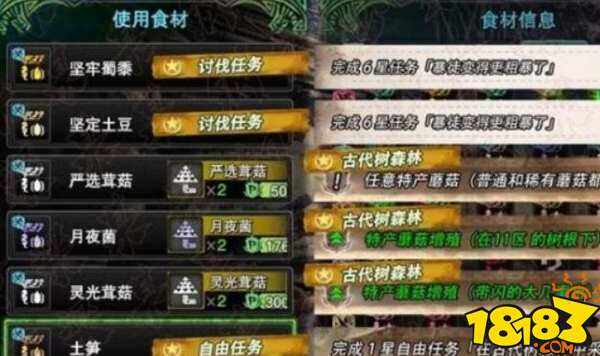 土笋:完成 1 星自由任务「在古代树森林中采集菇类」。