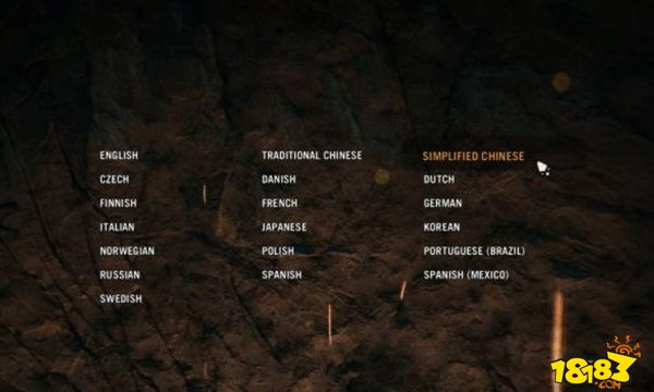 孤岛惊魂6玩家设置中文配音在游戏登录页面点击第二个选项OPTIONS,跳转再点击第二选项INTERFACE,找到Language第三个选项SIMPLIFIED CHINESE点击即可设置为简体中文,设置完成后的简体中文界面就是中文配音了。