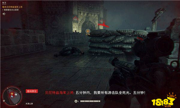 13、进入大门后,触发慢动作场景,使用手枪迅速瞄准贝尼特兹海军上将,将其击毙(反应时间大概在3秒左右)。