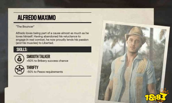 2、阿尔弗雷多·马克西莫、地点:完成主线任务“狮吼”(故事自动完成)。技能:健谈 节俭