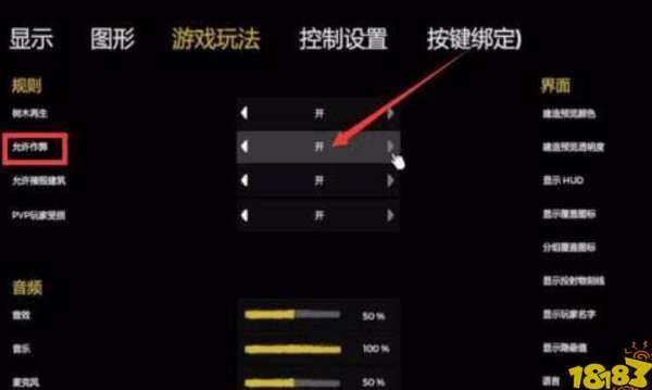 1,第一步在游戏设置中的游戏玩法处,我们将允许作弊给打开,如图。