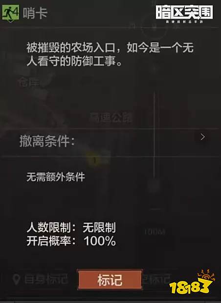 暗区突围撤离点机制介绍:暗区中每个地图的撤离点位置都不一样;但每局都会有固定撤离点、随机撤离点和特殊撤离点;以农场地图为例:暗区战场两侧的高速路口属于固定撤离点。